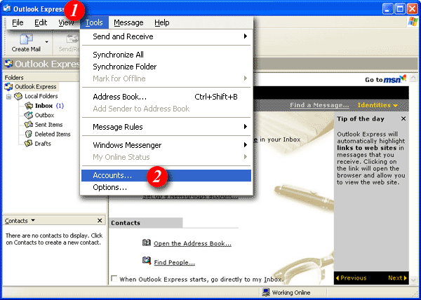 | 4)In the middle of the screen you will see a list of accounts that have already been setup in Outlook Express. | |||||